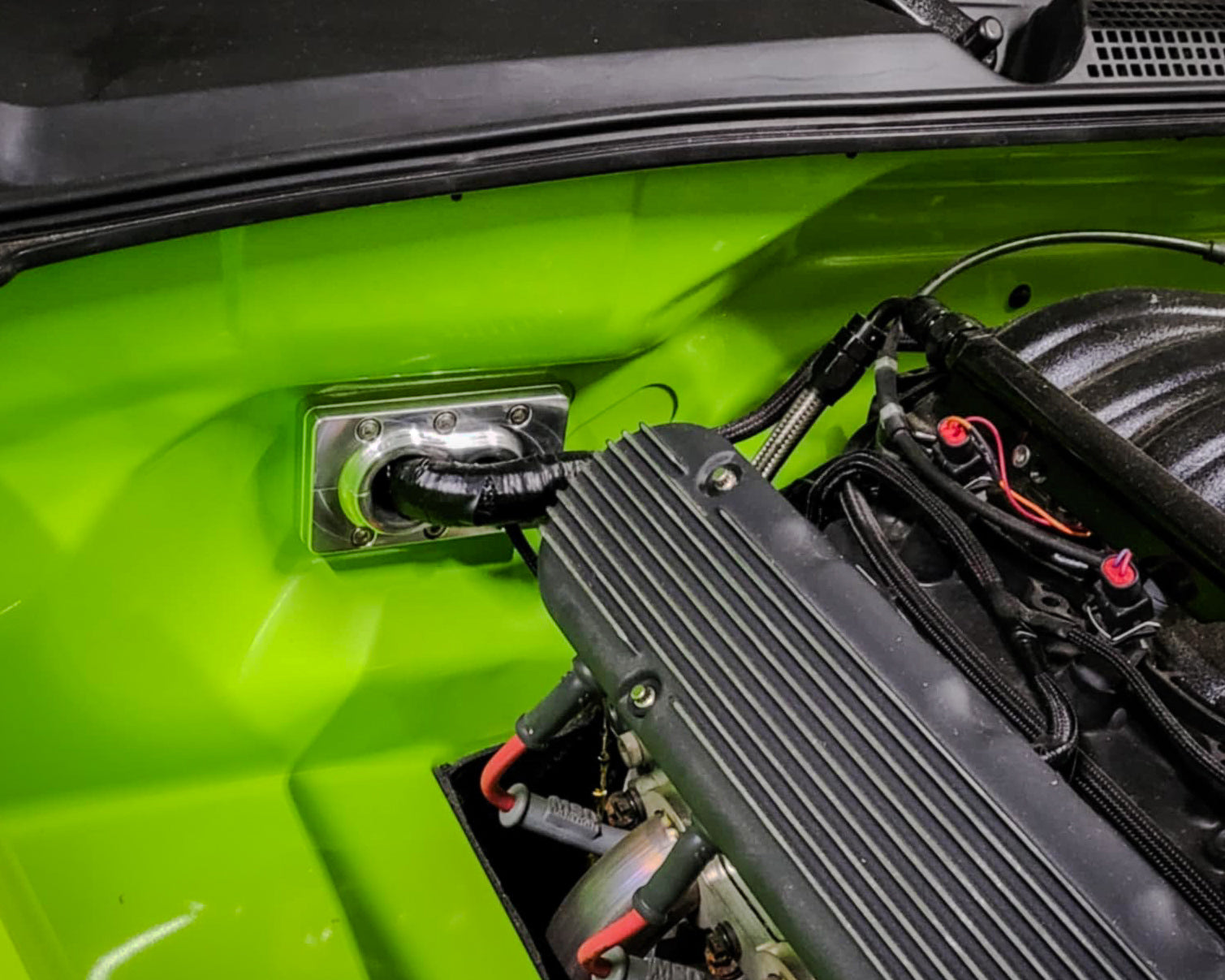 Crafted from top-quality billet aluminum and CNC machined to perfection, our pass-through provides a smooth and secure entry point for your harness. The base easily attaches to the firewall, creating a large enough hole for all your connectors and relays. And with a protective design that guards your wires from the sharp edges of the sheet metal, you can rest assured that your harness will stay safe and intact.